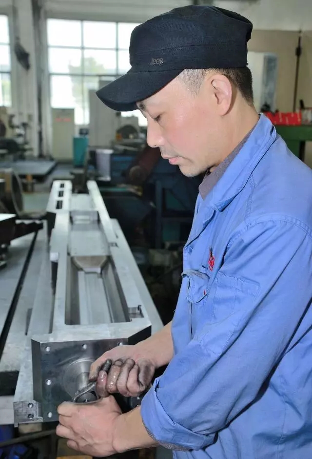 在中國兵器工業集團武漢重型機床集團有限公司車間廠房內,當記者見到研磨鉗工魏紅權時,他正彎腰弓步,均勻研磨一個高精度的零件。