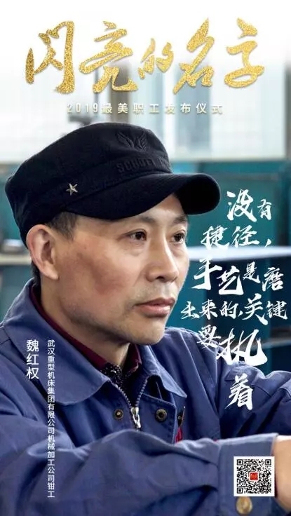 在2019年全國“最美職工”發布儀式現場,中國兵器工業集團武漢重型機床集團有限公司機械加工公司鉗工魏紅權,與來自全國各地的另外8名獲獎者和1個集體,共同接受了中宣部、中華全國總工會授予的這一殊榮。