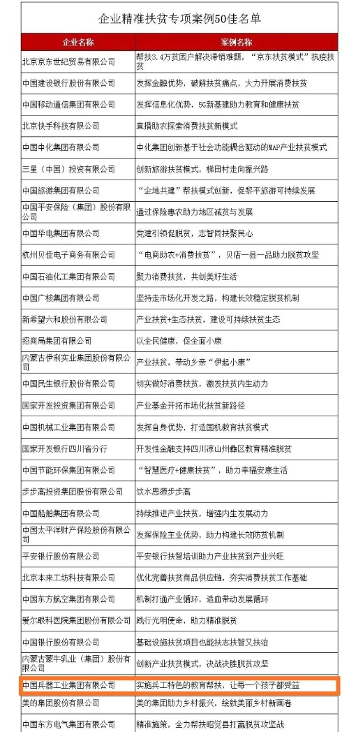 兵器工業集團教育扶貧獲評國務院扶貧辦2020年企業精準扶貧專項案例“50佳” |