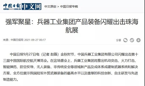 兵器工業(yè)集團(tuán)參展第十三屆中國(guó)航展受到社會(huì)廣泛關(guān)注 |
