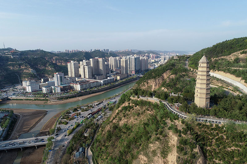 這是4月22日拍攝的延安市寶塔山(無人機照片)。新華社記者 張博文 攝