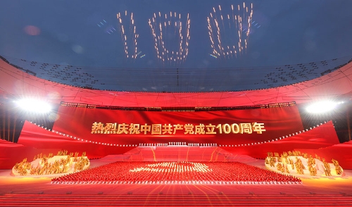 6月28日晚,慶祝中國共產黨成立100周年文藝演出《偉大征程》在北京國家體育場盛大舉行。這是盛典儀式。新華社記者 龐興雷 攝