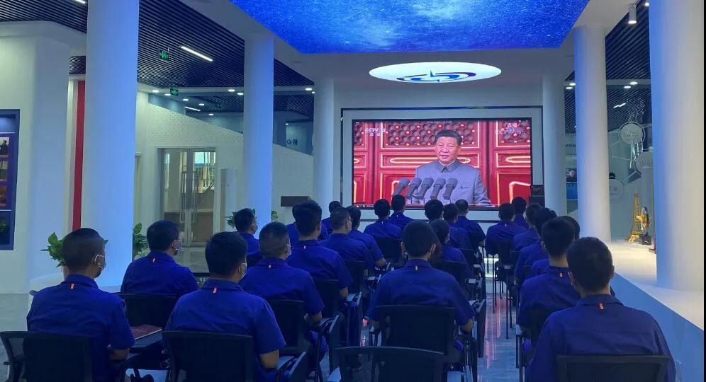 集團(tuán)公司總經(jīng)理、黨組副書記劉大山,黨組副書記周艦,黨組成員、總會計師張華,紀(jì)檢監(jiān)察組組長、黨組成員陳學(xué)釧,黨組成員、副總經(jīng)理鄒文超,黨組成員、副總經(jīng)理植玉林帶領(lǐng)總部全體職工觀看慶祝大會,各單位組織機(jī)關(guān)干部、科研人員、車間工人等通過集中收看、電視、電腦、手機(jī)網(wǎng)絡(luò)等方式觀看慶祝大會。