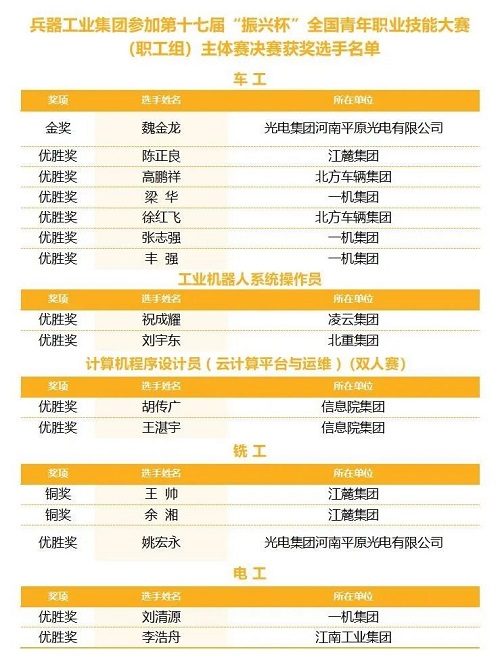 喜報丨兵器工業集團青年職工在第十七屆“振興杯”全國青年職業技能大賽(職工組)決賽中勇奪金獎