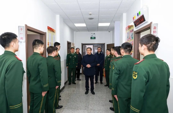 新春佳節將至,歲寒情深暖心。2月13日,中國兵器工業集團有限公司黨組書記、董事長周治平到總部三里河辦公區、車道溝十號院執勤武警營區,向一線官兵致以誠摯問候和新春祝福。 周治平走訪了作戰勤務值班室、營房等,詳細了解春節期間勤務安排、生活保障和防寒保暖措施等情況,對官兵的堅守、付出和奉獻予以高度贊揚。周治平表示,執勤崗位責任重大、工作辛苦,執勤武警官兵始終牢記職責、忠誠履職、紀律嚴明、作風優良,以實際行動踐行了軍民魚水情、軍地一家親,贏得了兵器干部職工的一致好評,為兵器工業集團改革發展穩定工作作出了重要貢獻。集團公司有關部門要強化服務保障、筑牢軍地情誼,用心用情用力為官兵創造良好的學習生活訓練條件。 執勤武警負責人衷心感謝集團公司一直以來的關心支持,表示廣大官兵將認真踐行武警部隊優良傳統,聽黨指揮、不辱使命、刻苦訓練、增強本領,以更加飽滿的熱情投入到新的一年執勤工作中,為維護兵器工業保衛安全穩定貢獻更大力量。(綜合管理部) |
